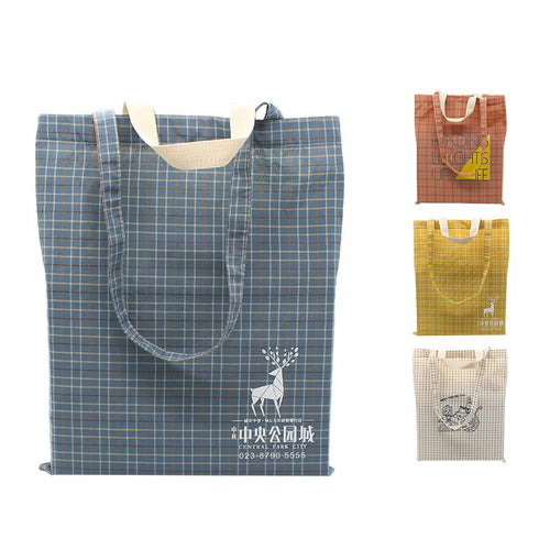 Checkered Cotton Tote Bag With Carrying Handles And Carrying Straps