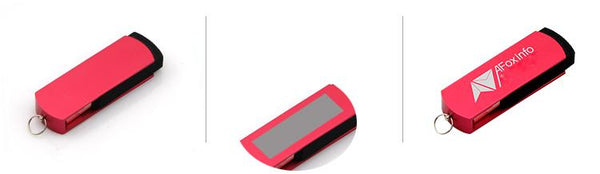 4GB rotating USB thumbdrive with coloured body and key ring.