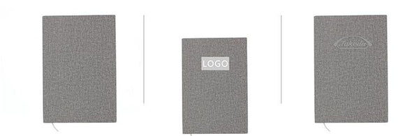 A5 notebook with textured cover and ribbon bookmark.