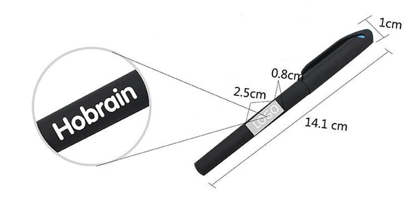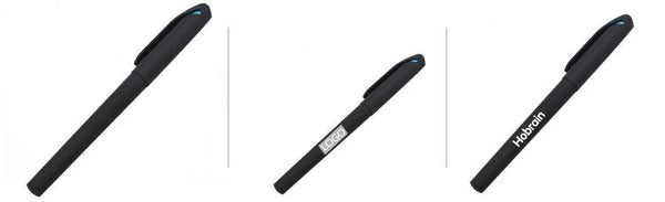 Business gel pen with black body, cap and grip.