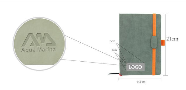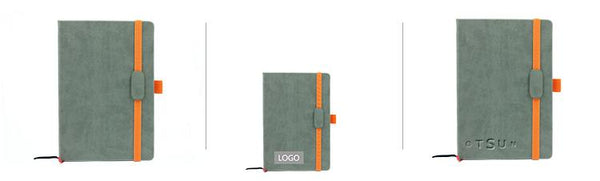 Dot grid business notebook with pu leather cover, coloured elastic band closure and pen holder (21 x 14.5cm).