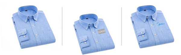 Button-up Long-sleeved shirt with collar and one front pocket.