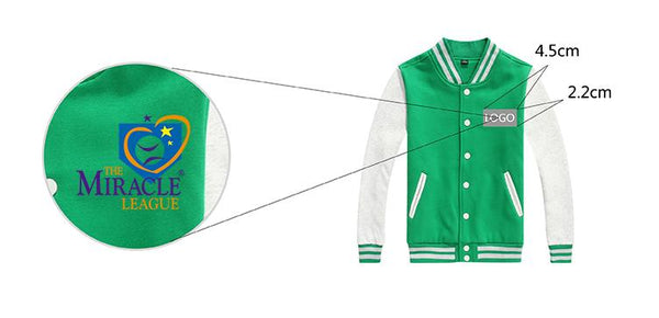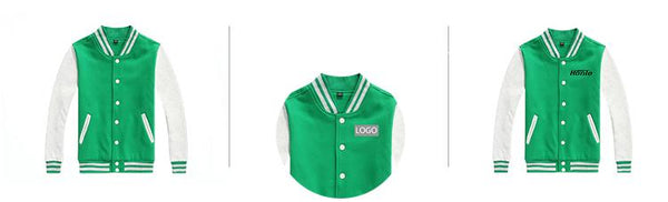 Long-sleeved baseball jacket made of cotton. Includes white sleeves, striped collar, hem and cuffs.