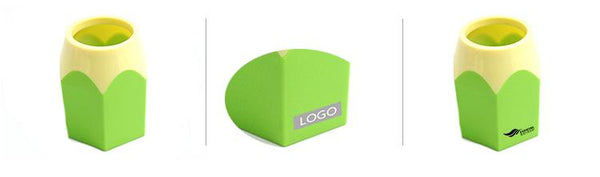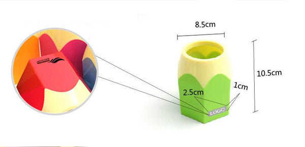 Cute coloured hexagon plastic pen holder with narrow opening.