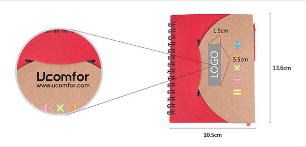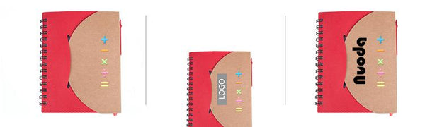 Kraft paper notebook set with cutout windows in mathematical symbol designs, 5 sticky flag pads and eco-friendly pen.