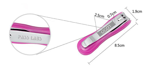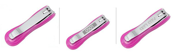 Large stainless steel nail clipper with coloured plastic sleeve.