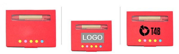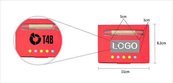 Mini notepad with kraft paper cover and window. includes mini pen, notepad and 5 sticky flag pads.