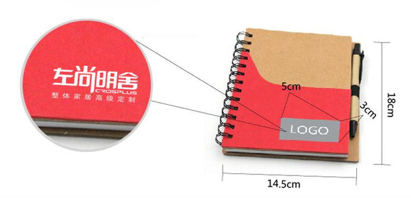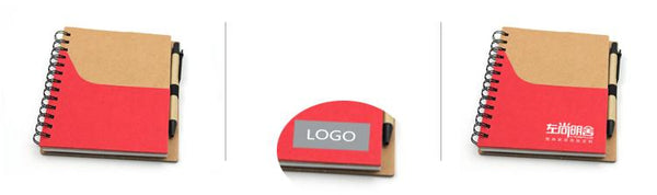 Notebook set with coloured pocket on Kraft paper cover. Includes pen.