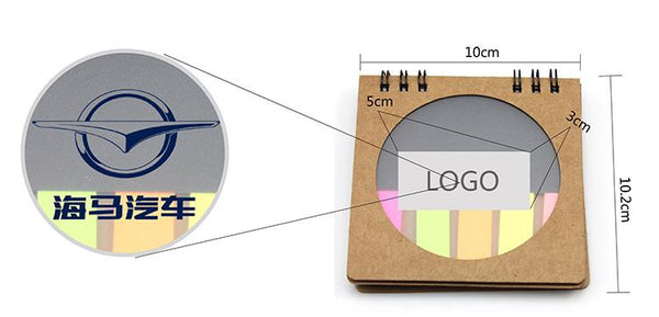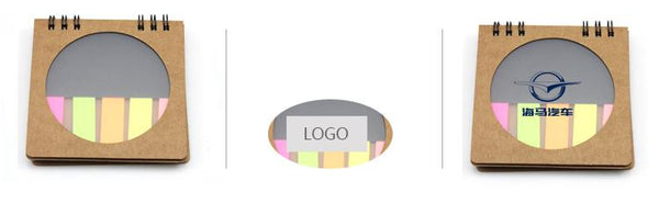 Notepad set with circle cutout on cover. Includes notepad and 5 sticky flag pads.