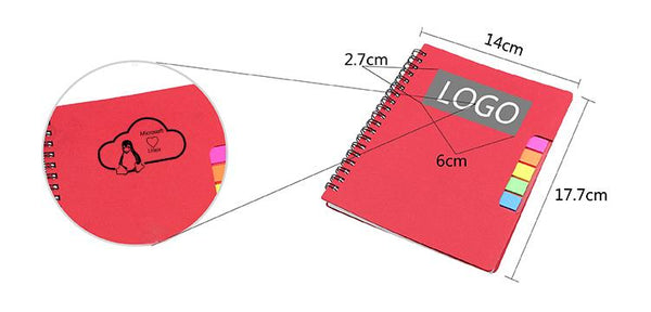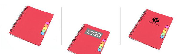 Coloured office notebook set. includes sticky flag pads in 5 colours and pen.