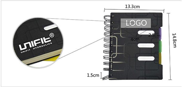 Coloured office spiral-bound notebook with index dividers in 3 colours.