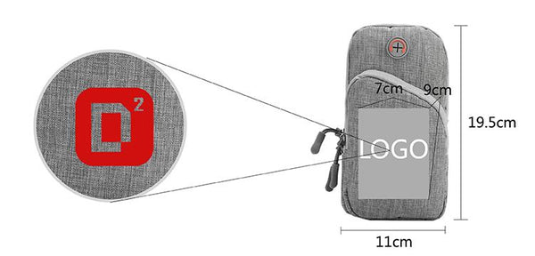 Arm bag for sports and outdoor activities. Includes wire slots for earphones, adjustable band and external pocket with zip.