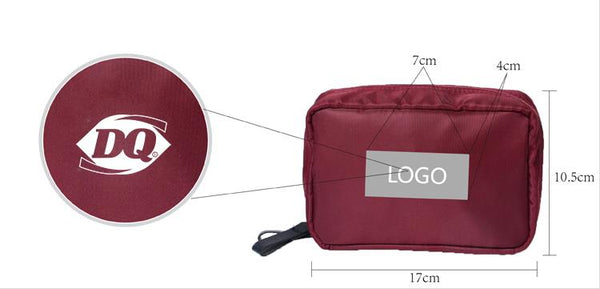 Rectangular travel pouch with internal compartments with zip (polyester/nylon material).
