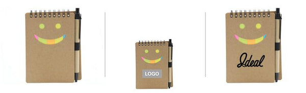 Notepad with smiley face design on kraft paper cover. includes notepad, sticky notepad, sticky flag pads in 5 colours and pen.
