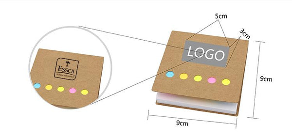 Square notepad and sticky flag pads in 5 colours with kraft paper cover.