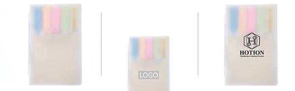 Sticky notes set in snap closure box. includes sticky notes and sticky flag pads in 5 colours.