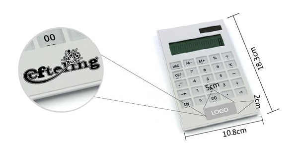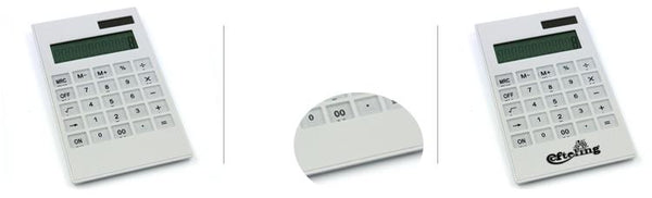 White office calculator with clear buttons (18.3 x 10.8cm).