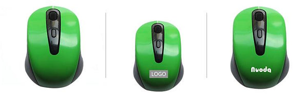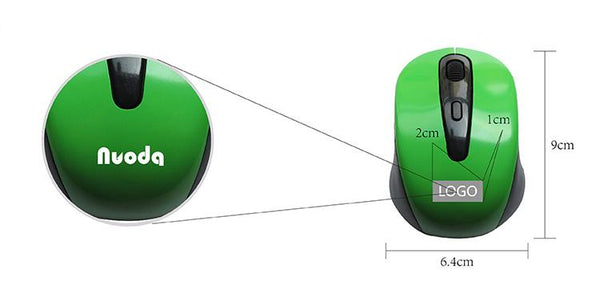 Battery-operated wireless mouse with comfortable hand grip and USB connector.