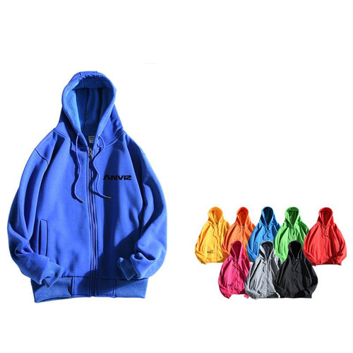 Zippered Long-Sleeved Sweater With Hood And 2 Pockets