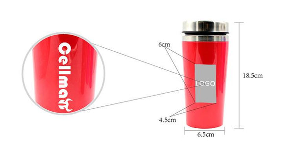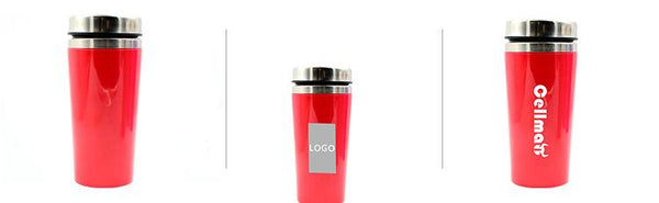 Double wall insulated drinking tumbler with coloured body and silver lid.