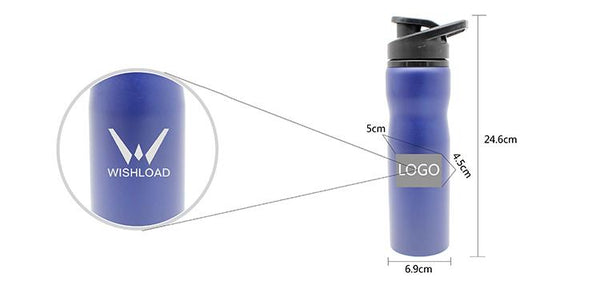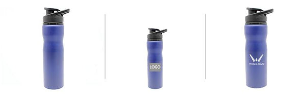 Stainless steel drinking bottle with matte metallic grooved body, handle and spout (750ml capacity).