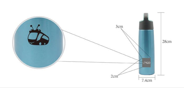 Stainless steel drinking bottle with angled handle (750ml capacity).