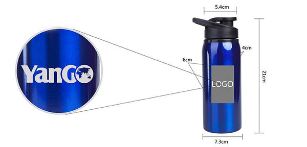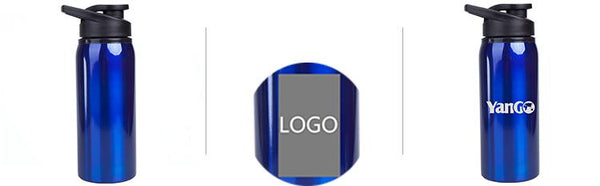 Stainless steel drinking bottle with handle and flip cap (750ml capacity).