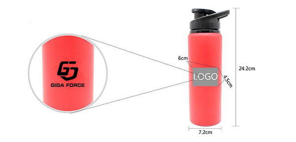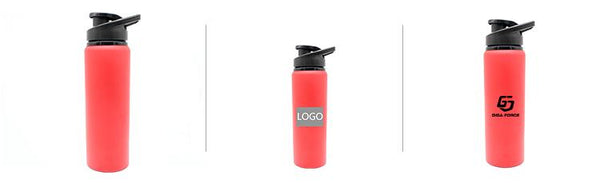 Stainless steel drinking bottle with matte metallic body with handle and spout (750ml capacity).