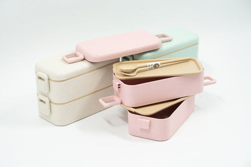 Two Tier Eco Wheat Straw Lunch Box with Cutlery