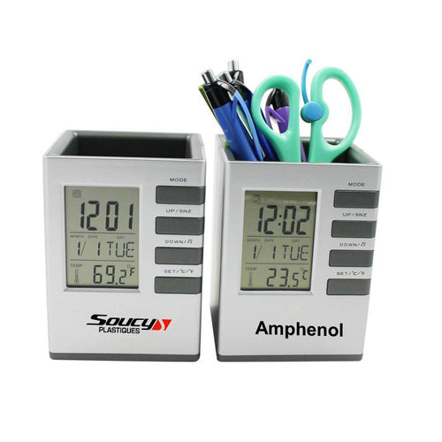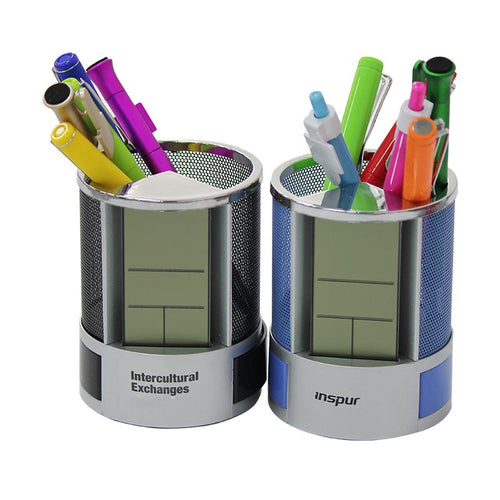 Square Pen Holder With Electronic Calendar