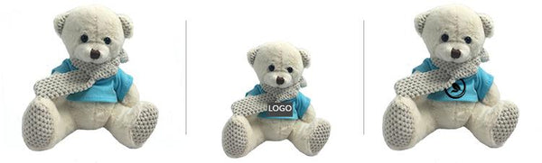 Teddy bear plush toy with t-shirt and knitted scarf, knitted ears and feet (16cm).