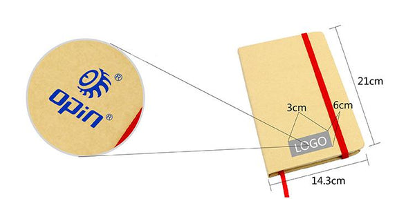 A5 lined notebook with kraft paper cover and elastic band closure (21 x 14.3cm).