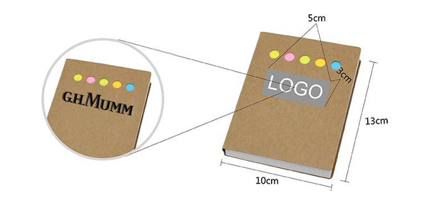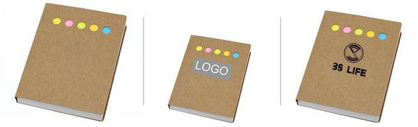Large notepad with kraft paper cover. includes notepad, sticky notepad and sticky flag pads in 5 colours.