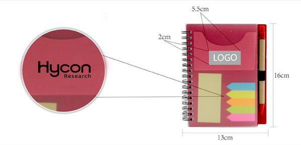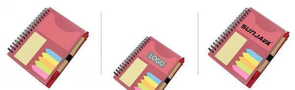 Multifunctional notebook set. includes pen, sticky notepad and sticky flag pads in 5 colours.